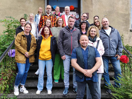 Wie vor Jahrzehnten führte der Weg anschließend zu Fuß nach Grunewald. Dort, im Landgasthof Krause bei gutem Essen und spätsommerlicher Stimmung, entwickelten sich zahlreiche Gespräche über das Leben und die vielen verschiedenen Wege, die jede und jeder von uns gegangen ist. Bis in die frühen Morgenstunden wurde geredet und in Erinnerungen geschwelgt, und am Ende waren sich alle einig: Es war ein schöner runder Abend unter alten Bekannten.