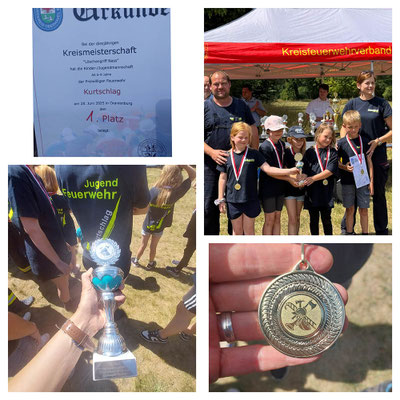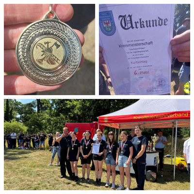 Am 24. Mai 2025 machten wir uns Frühs auf den Weg ins Nachbardorf Kappe. Dort hat der diesjährige Stadtausscheid stattgefunden. Kurtschlag hat durch Losentscheid den ersten Startplatz gehabt. Die zehn Stationen waren auf sechs Kilometer ringsherum um Kappe verteilt. Begonnen haben wir mit Mistgabeldart, dann folgten Knotenkunde, Erste Hilfe, Wissensquiz sowie Gummistiefelweitwurf und einiges mehr. Das Wetter spielte hervorragend mit, so dass die Motivation der Kinder sehr hoch war. Zur Stärkung gab es für alle Bratwurst. Danach hieß es warten, bis alle Gruppen eingetroffen waren und die Ergebnisse ermittelt wurden. Unsere Kinder setzten sich mit 0,2 Punkten Vorsprung durch und erhielten verdient den ersten Platz. Stolz hielten die Kinder ihre Medaillen und den großen Wanderpokal in den Händen. Zur Belohnung gab es für alle Eis beim Eis-Fernow in Zehdenick.