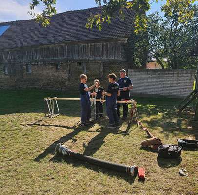 Dieses Jahr stand die gemeinsame Tagesausbildung mit der Jugendfeuerwehr Zehdenick in Kurtschlag an. Am 20. September trafen wir uns am Gerätehaus, um danach in gemischten Gruppen vier Stationen zu durchlaufen. Die Kinder mussten eine Funkstation, Geräte- und Knotenkunde, den Löschangriff Nass und eine Station Offenes Gewässer bewältigen. Nach Abschluss der diversen Ausbildungen ließen wir den Vormittag bei Sonne, einer Bratwurst und Eis ausklingen.